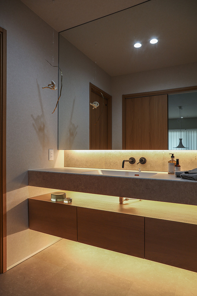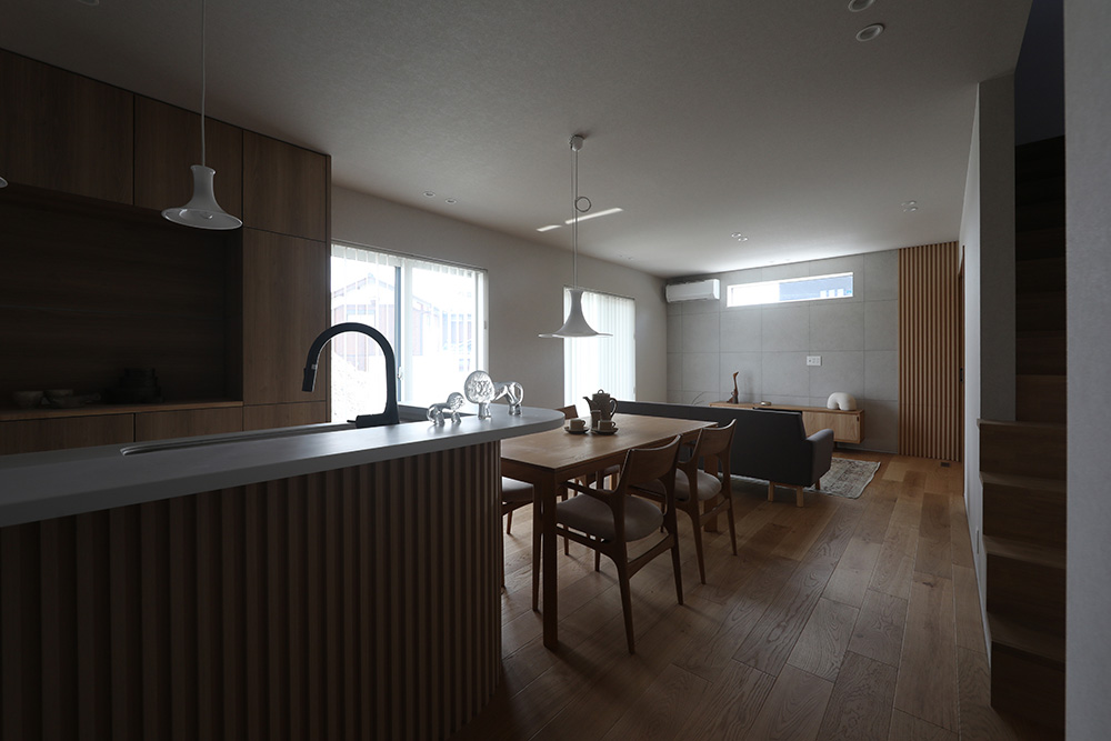 「家族の絆が永遠に続く家」をコンセプトにプランニングされた家。 ガレージがあることによって水平ラインが強調されたモダンな外観に対し、内観はベージュトーンを基調とした落ち着くジャパンディスタイル。 こだわりのインテリアが映える、落ち着くけれど高級感のあるお家です。