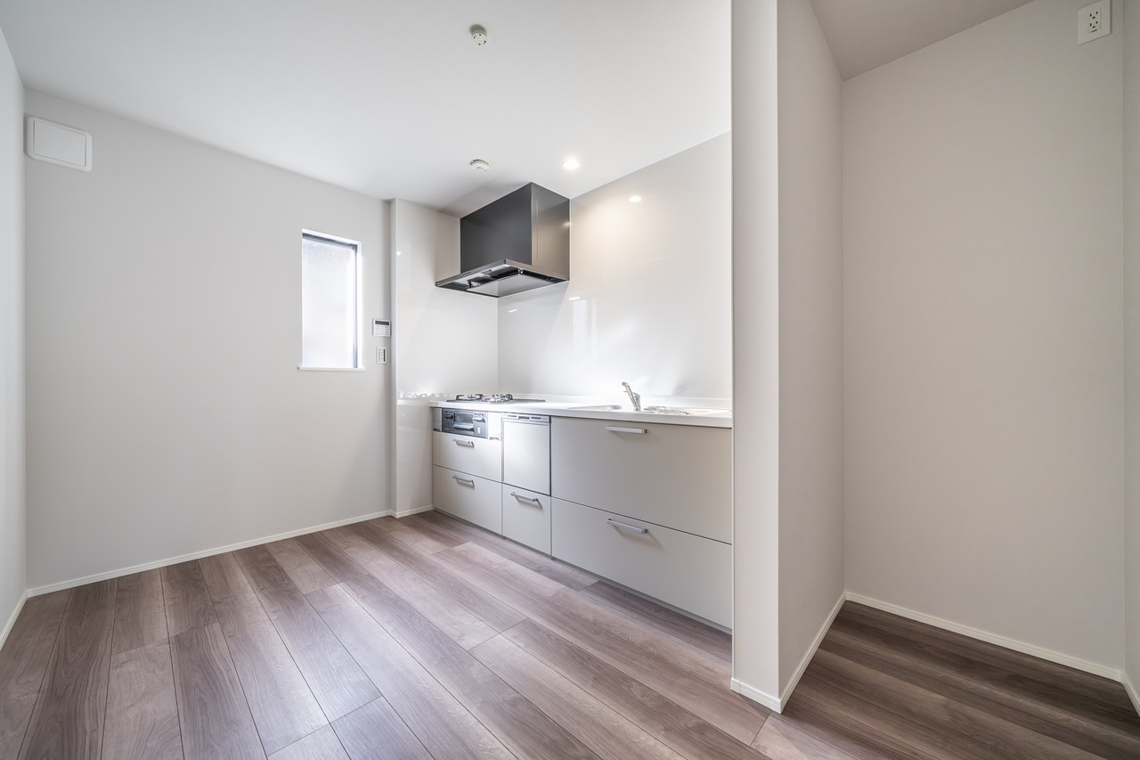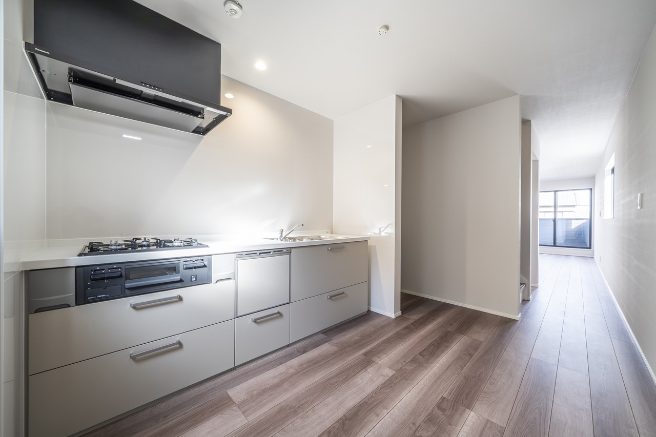 キッチンからは視線が気になりにくく、リビングからはキッチンが見えにくいことで、落ち着いてくつろげる空間となっています。