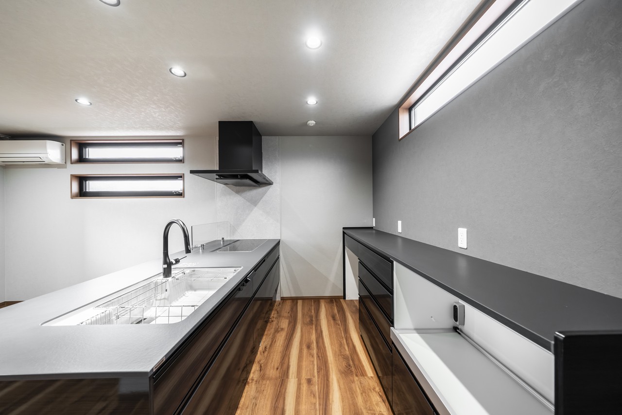 内装はグレーを基調とし、クールさとナチュラルさを兼ね備えたデザイン。収納も充実し、暮らしやすさをスマートに叶えます。