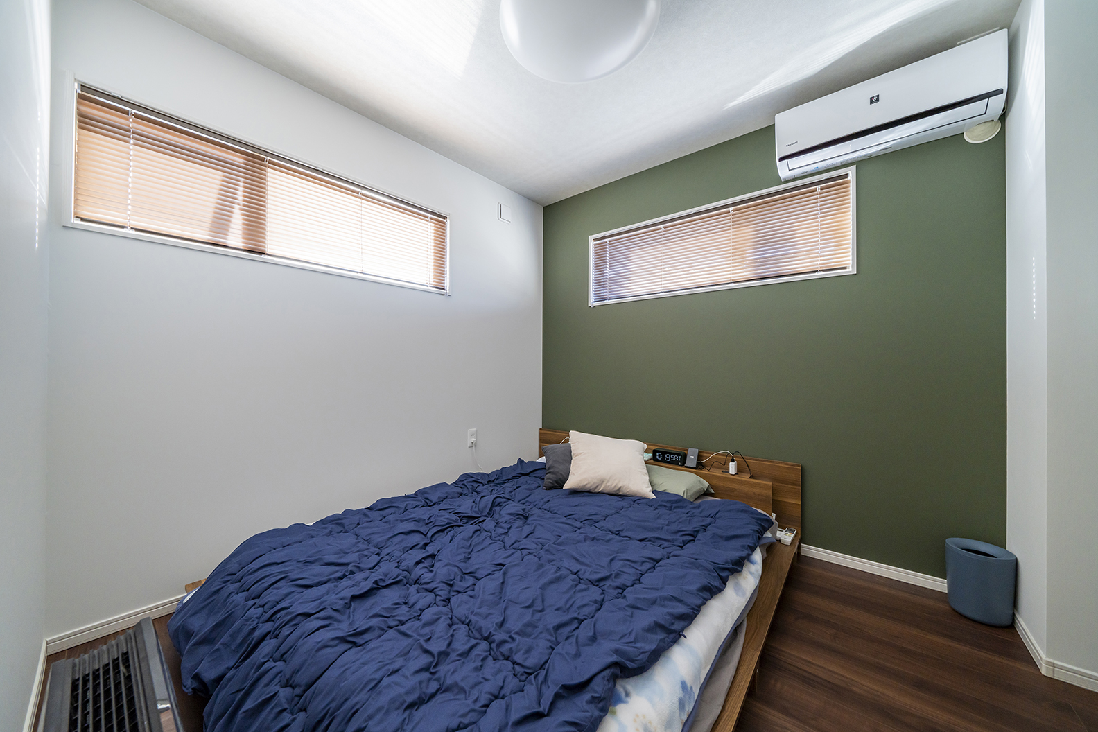 落ち着いたグリーンのアクセントクロスで安らぎの空間